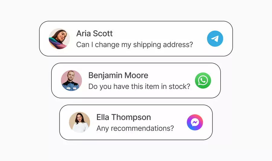 Unifies customer communication from various channels like Telegram, Whatsapp, or Facebook Messenger into a single cohesive thread, allowing agents to view and respond to messages from a single dashboard.