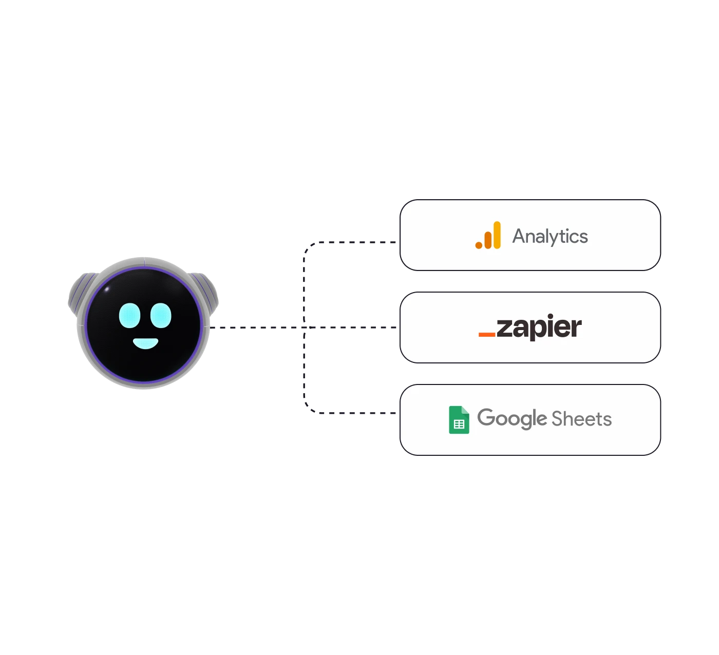 Seamlessly connect with a variety of platforms, including Google Sheets, Google Analytics, Pixel, and more to boost your chatbot's capabilities.